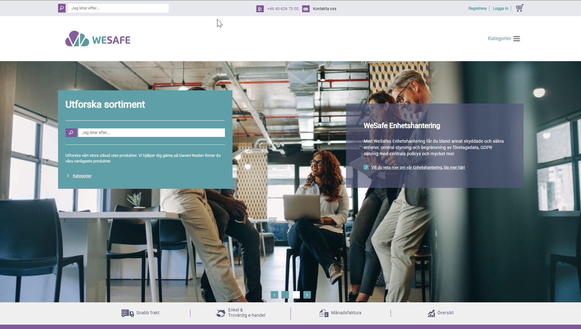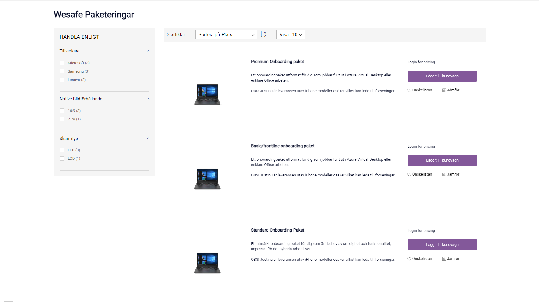 I vår webbshop kan du när som helst köpa datorer, mobiler eller andra enheter. När du besöker den hämtar den de just nu bästa priserna från de tre största distributörerna i Sverige. När du beställt skickas de direkt till adressen du angett. Installation och konfiguration görs automatiskt med hjälp av Microsoft Autopilot. Om ditt företag har Microsoft 365 Business Premium licens skickas de applikationer som tillhör enheten ut direkt när användaren som ska ha den loggar på.